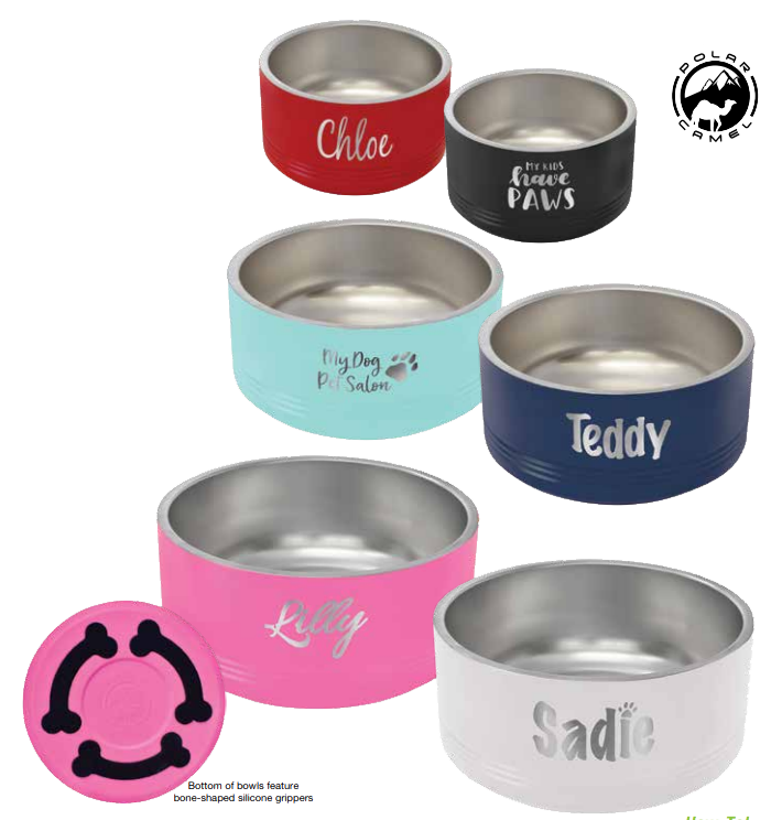 Sturdy and durable Polar Camel pet bowls are available in 6 colors. They have a large personalization area and non-slip grips on the bottom to prevent sliding on the floor. Spoil your pets and make them feel extra special with a custom bowl made just for them!
