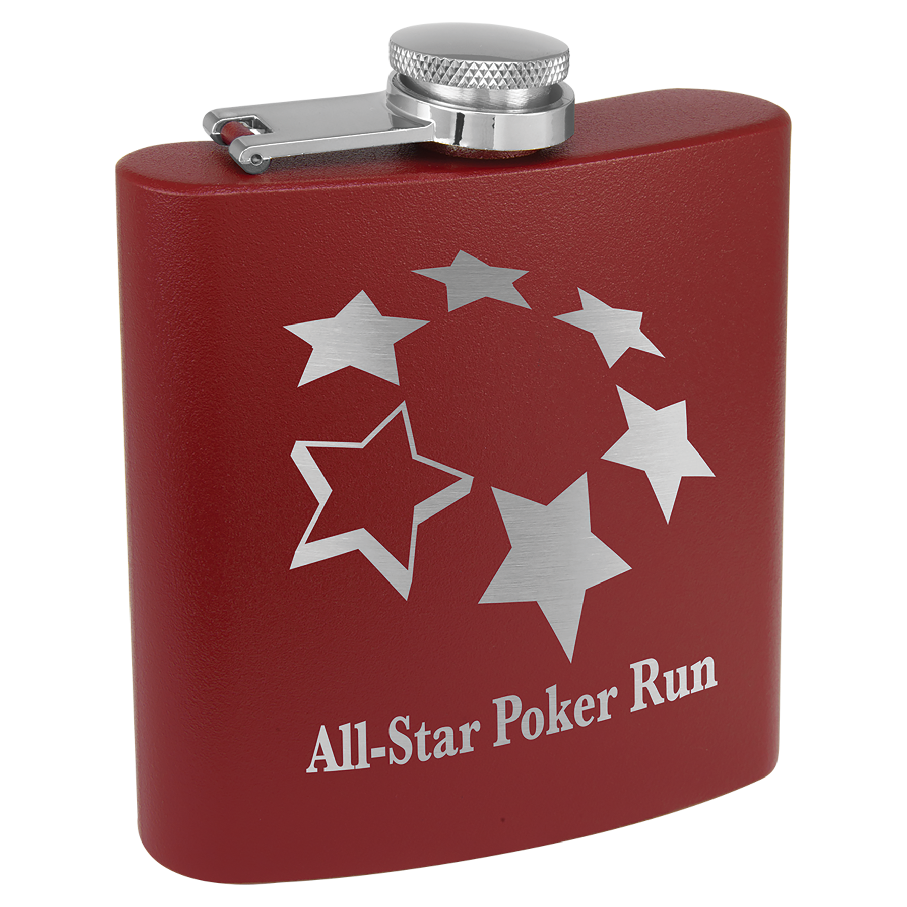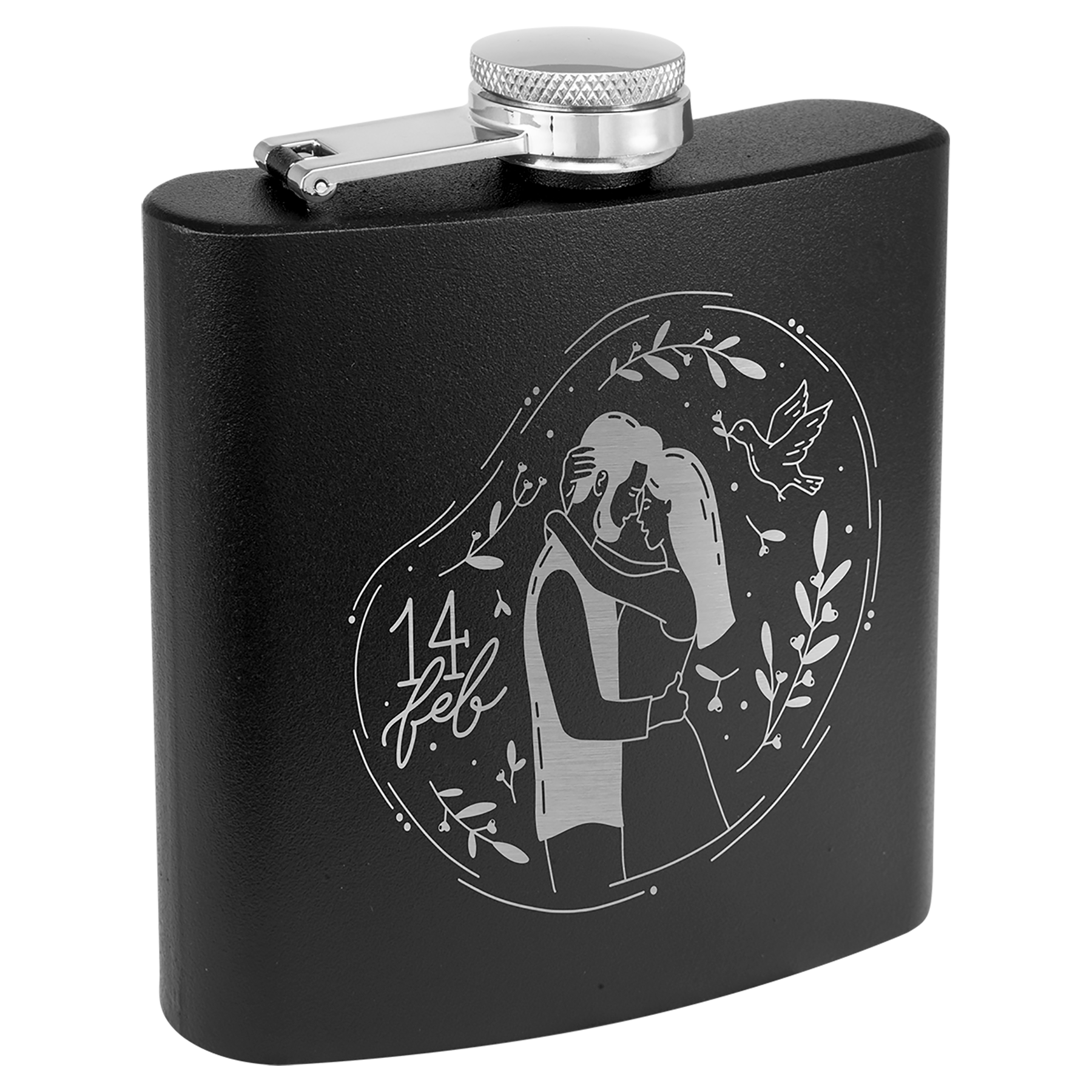 Our 6 oz. stainless steel flasks are powder coated for an exceptional matte, textured, look and feel. Our flasks engrave silver for brilliant contrast! Personalize with your logo, image or text to create stunning Bridesmaid Gifts, Promotional Products, Corporate Gifts, Gifts For Her or Gifts For Him. Each flask comes with attached leak resistant cap.