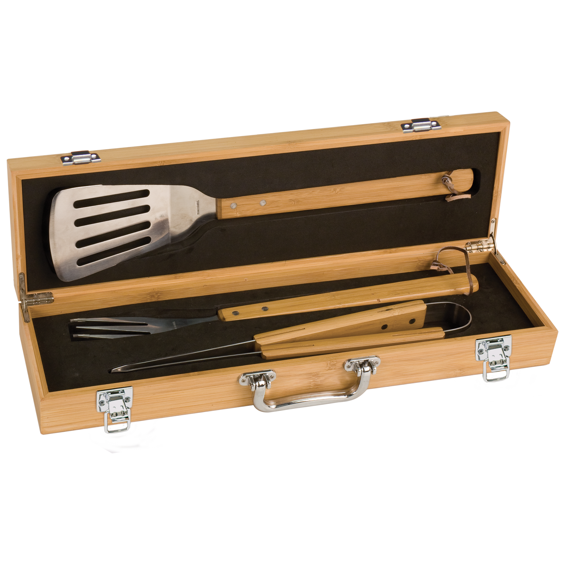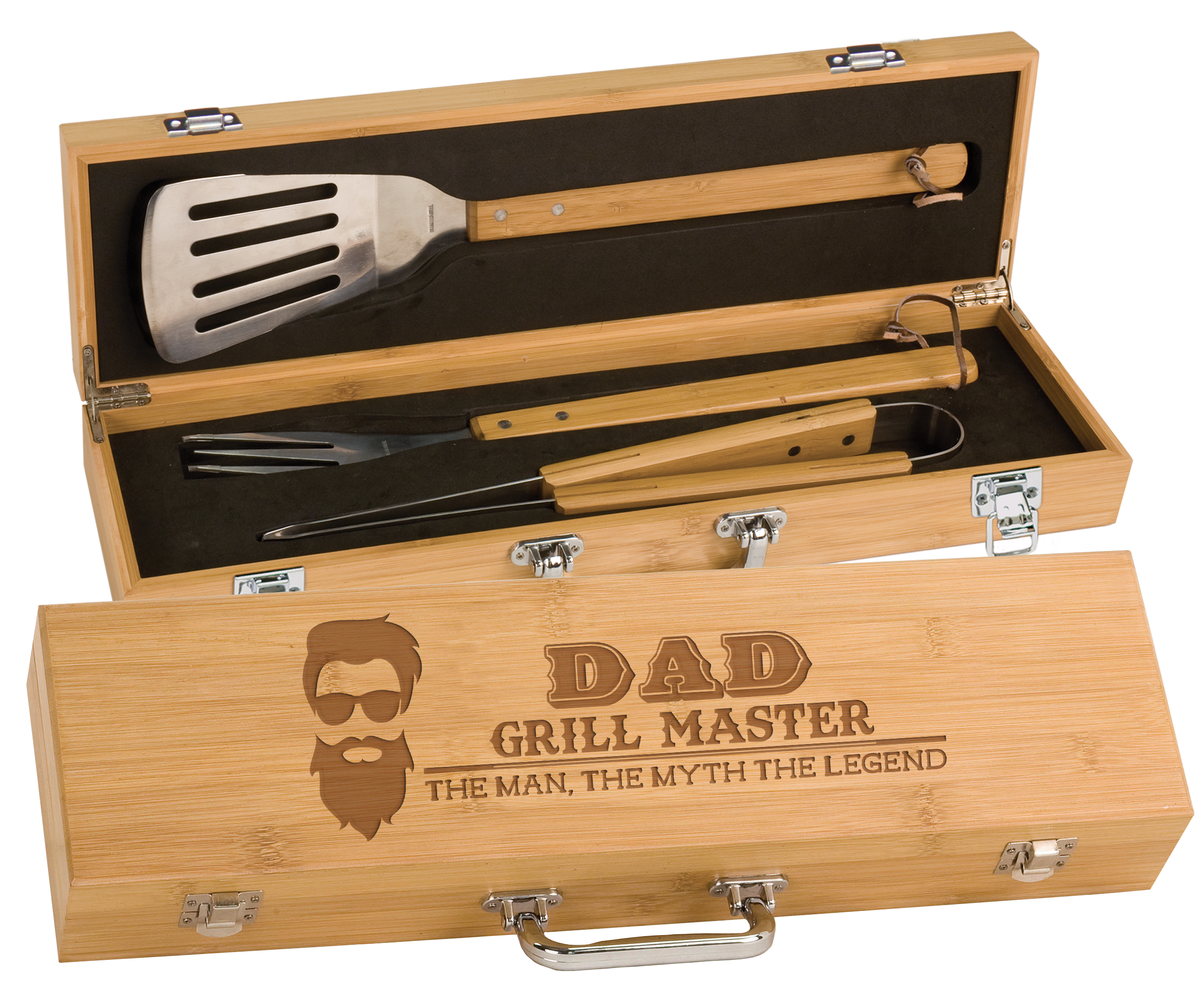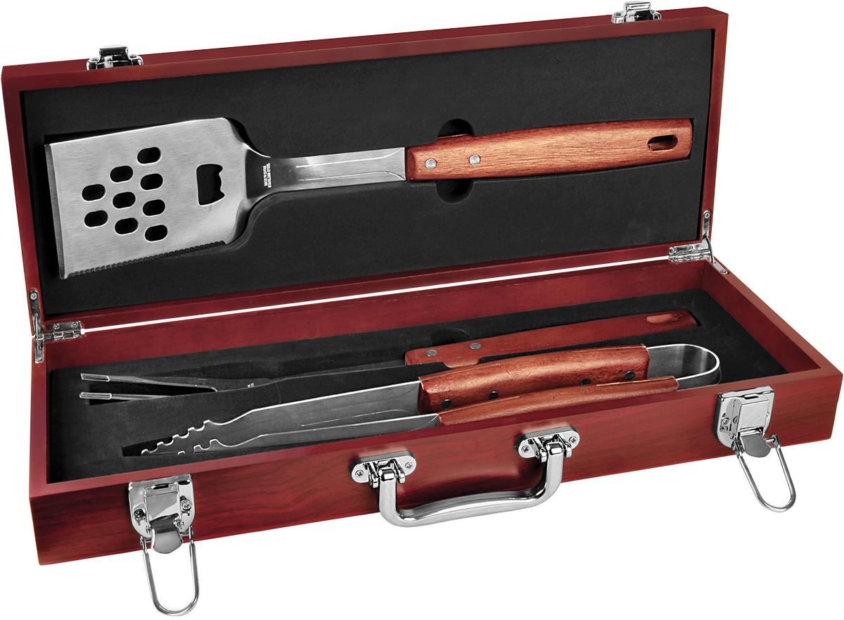 BBQ Sets are a great gift for the grill guru in your life! They come with tools in a beautiful box. They are easily customizable with laser engraving.  Add a monogram or name to personalize for a house warming, wedding, bridal shower, or batchlor gift. Customize with a logo or other graphics to create the perfect client gift.  The possibilities are endless!