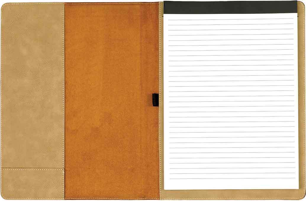 This leatherette portfolio offers the look and feel of genuine leather at a fraction of the price. This richly textured, synthetic material resists water spots, cleans easily, and is durable enough for the rigors of daily use. The high quality workmanship of each leatherette piece is sure to impress every recipient with its elegant individuality. Laserable leatherette items can be personalized through laser engraving for a sharp contrast or direct printing for a full color effect.  Great for corporate gifts as well as personal use!