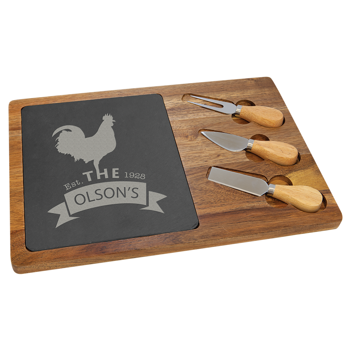 13 3/4" x 9 3/4" Acacia Wood/Slate Rectangle Cheese Set with Three Tools