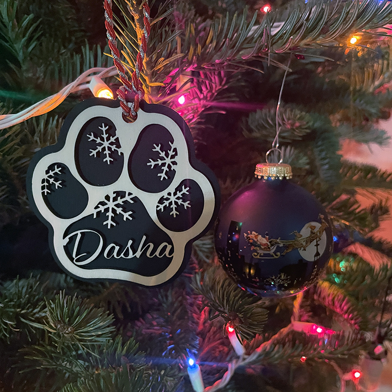 Personalized Laser Cut Pet Paw Print Ornament EC-ORNPET