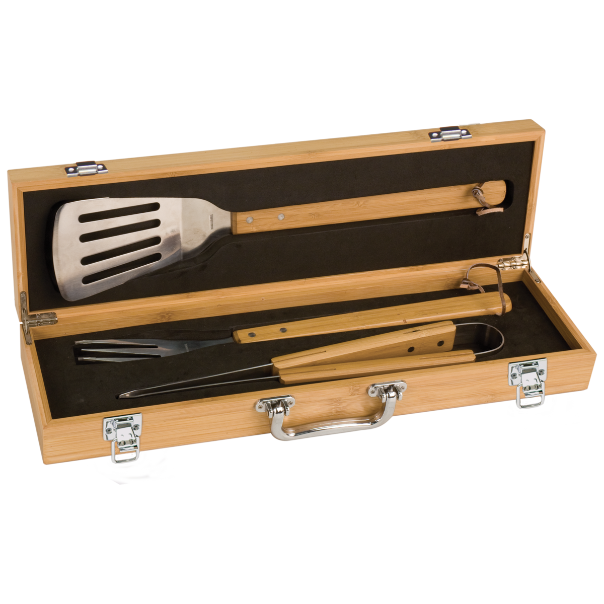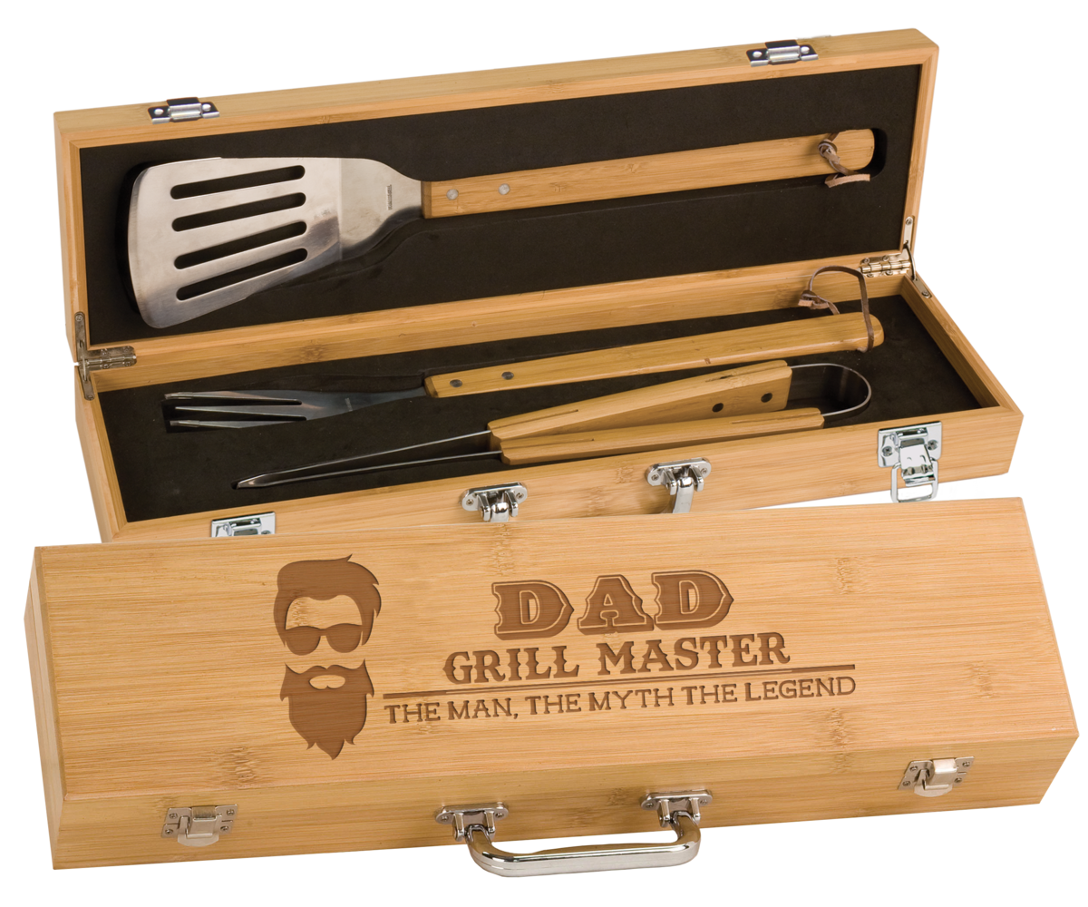 BBQ Sets are a great gift for the grill guru in your life! They come with tools in a beautiful box. They are easily customizable with laser engraving.  Add a monogram or name to personalize for a house warming, wedding, bridal shower, or batchlor gift. Customize with a logo or other graphics to create the perfect client gift.  The possibilities are endless!