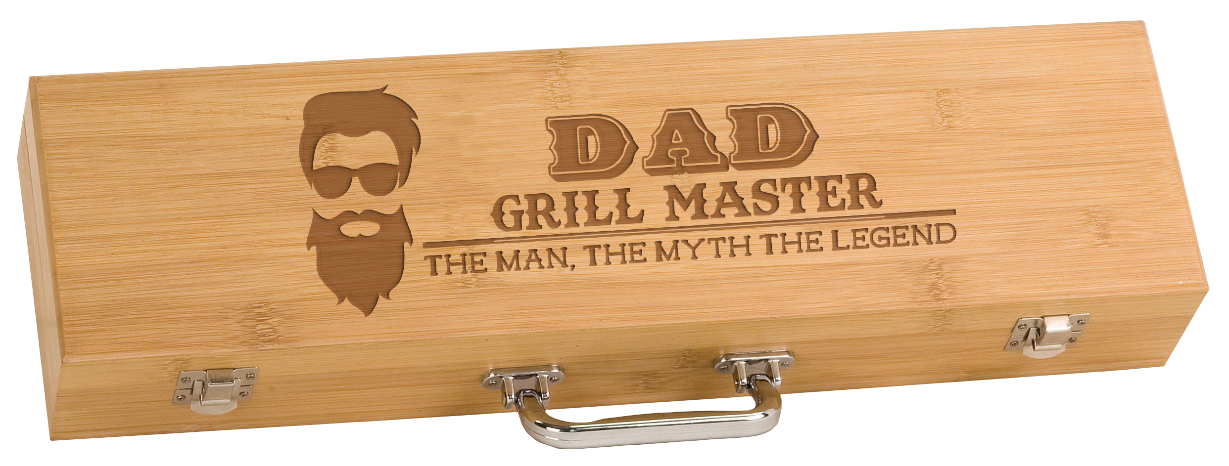 BBQ Sets are a great gift for the grill guru in your life! They come with tools in a beautiful box. They are easily customizable with laser engraving.  Add a monogram or name to personalize for a house warming, wedding, bridal shower, or batchlor gift. Customize with a logo or other graphics to create the perfect client gift.  The possibilities are endless!